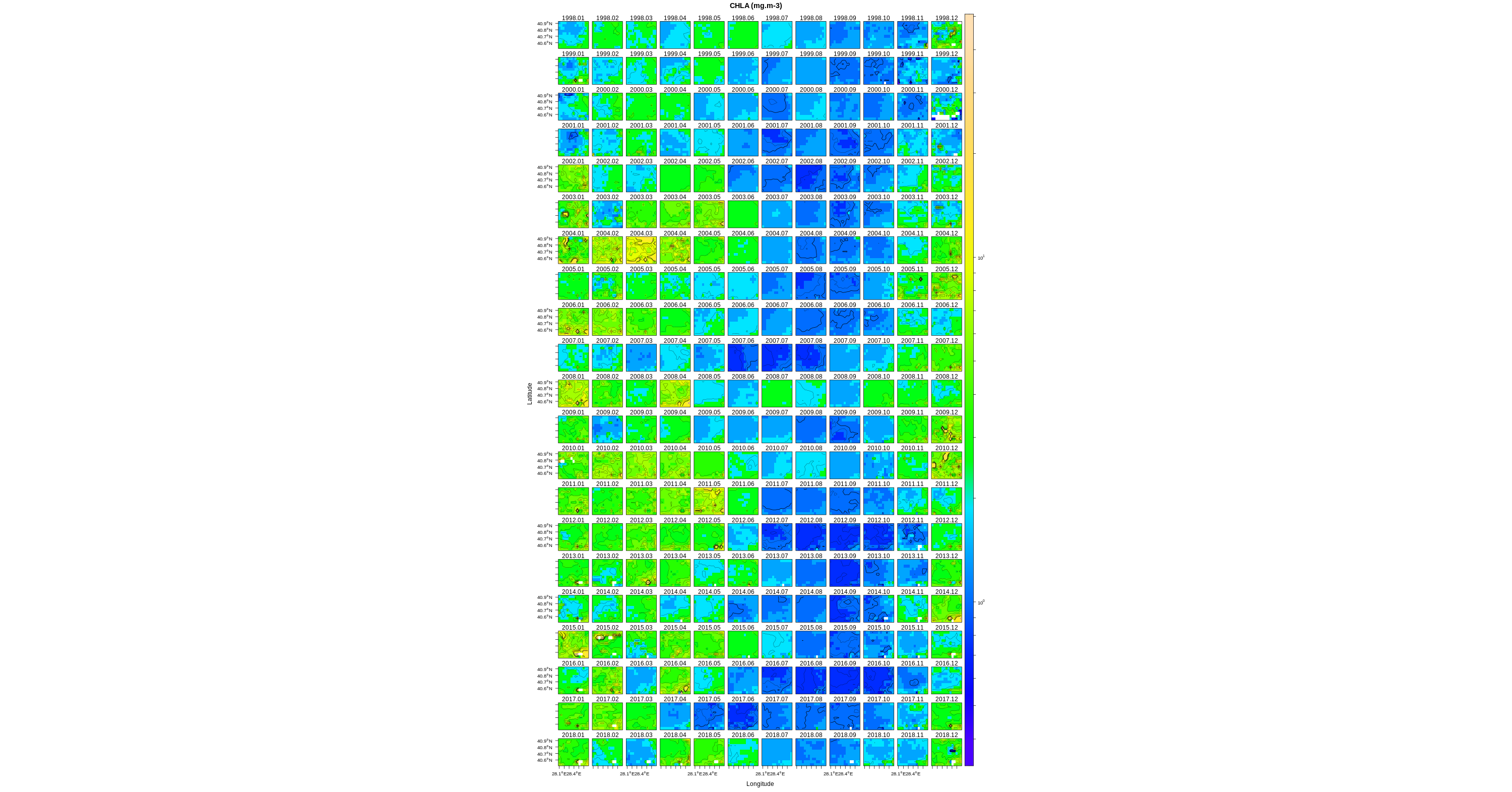 | CHLA | mg.m-3 | 1998.01/2018.12 | 66 | 0.05 | 0 | 2.271637 | 1.606472 | 0.5607831 | 35.68782 | 48.02359 | 0.227277 | 0 | 0.0113254 |
