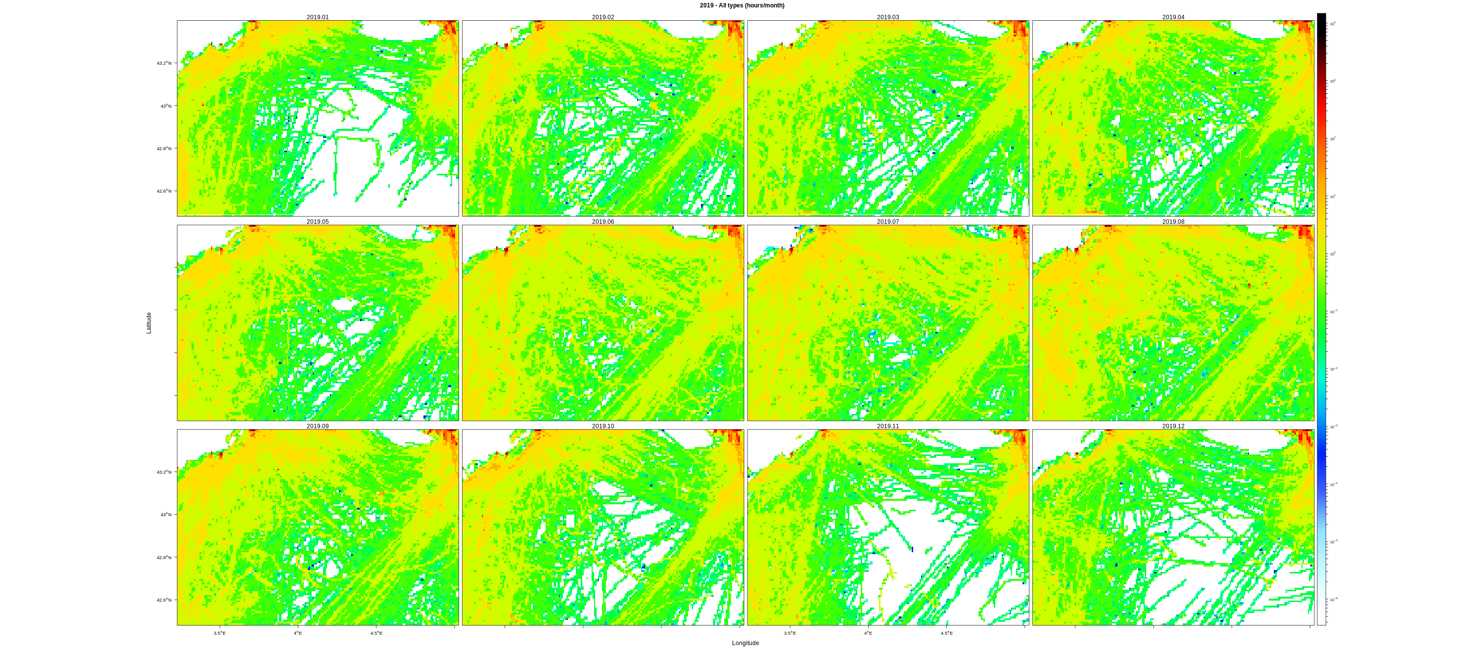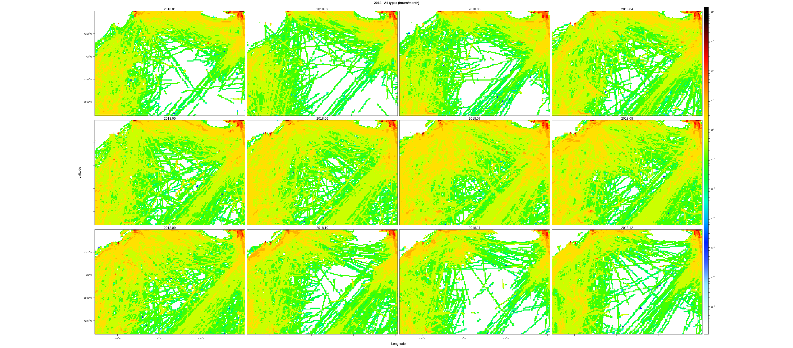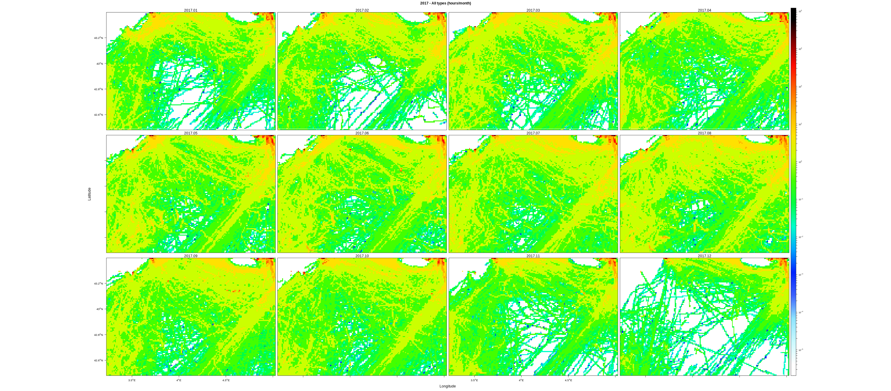 Monthly means (hours/km2)