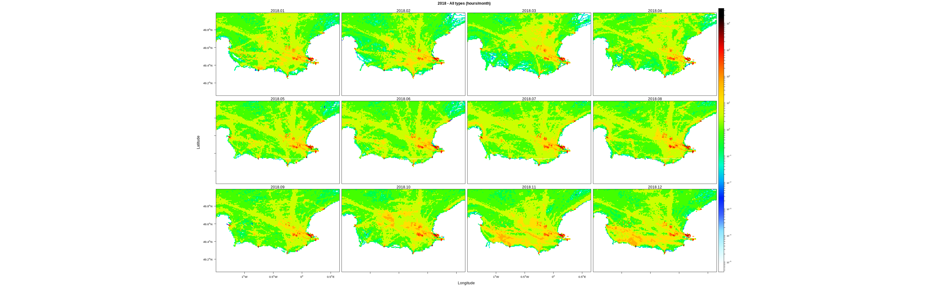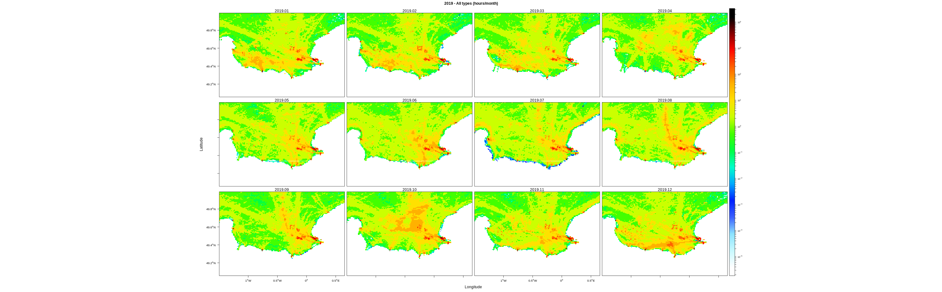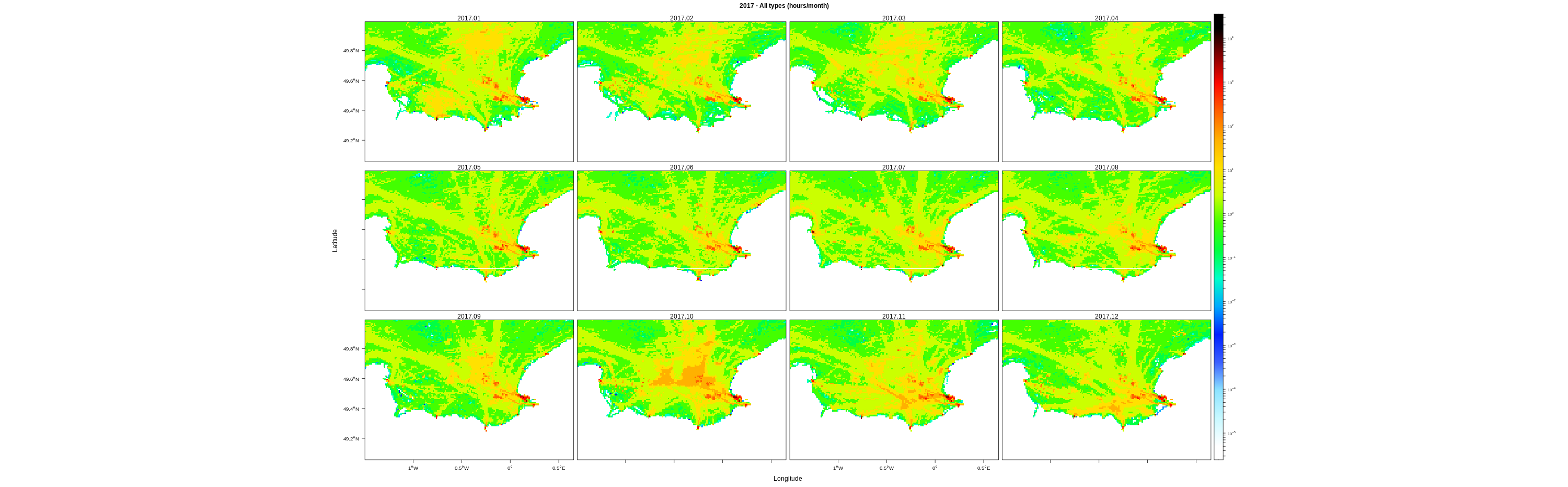 Monthly means (hours/km2)