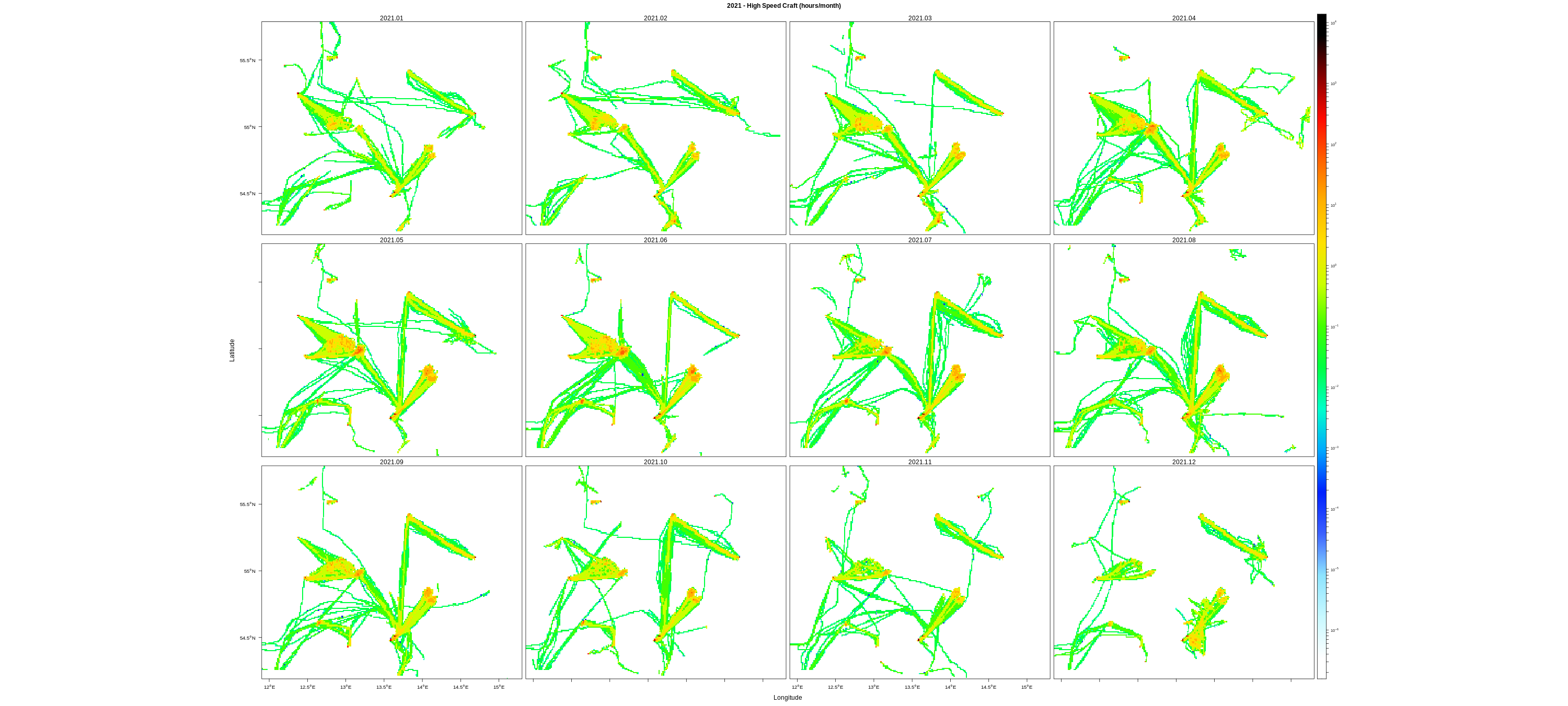 Monthly means (hours/km2)