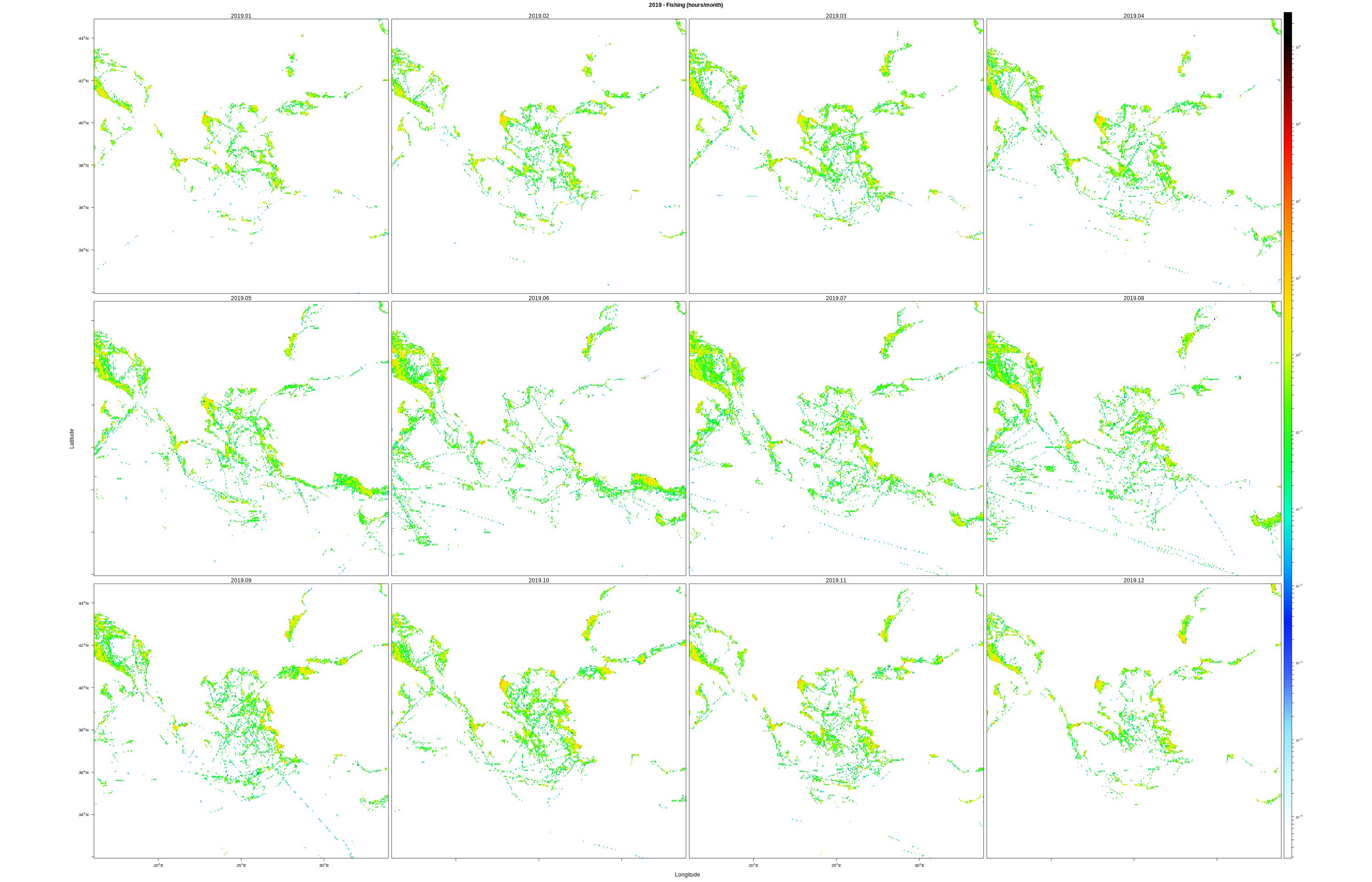 EMODnet Vessel Density maps were created by Cogea in 2019 in the framework of EMODnet Human Activities, an initiative funded by the EU Commission. The maps are based on AIS data purchased by Collecte Localisation Satellites (CLS) and ORBCOMM. The maps show shipping density in 1km*1km cells of a grid covering all EU waters (and some neighbouring areas). Density is expressed as hours per square kilometre per month. The following ship types are available:0 Other, 1 Fishing, 2 Service, 3 Dredging or underwater ops, 4 Sailing, 5 Pleasure Craft, 6 High speed craft, 7 Tug and towing, 8 Passenger, 9 Cargo, 10 Tanker, 11 Military and Law Enforcement, 12 Unknown and All ship types. Data are available by month of year. Yearly averages are also available.