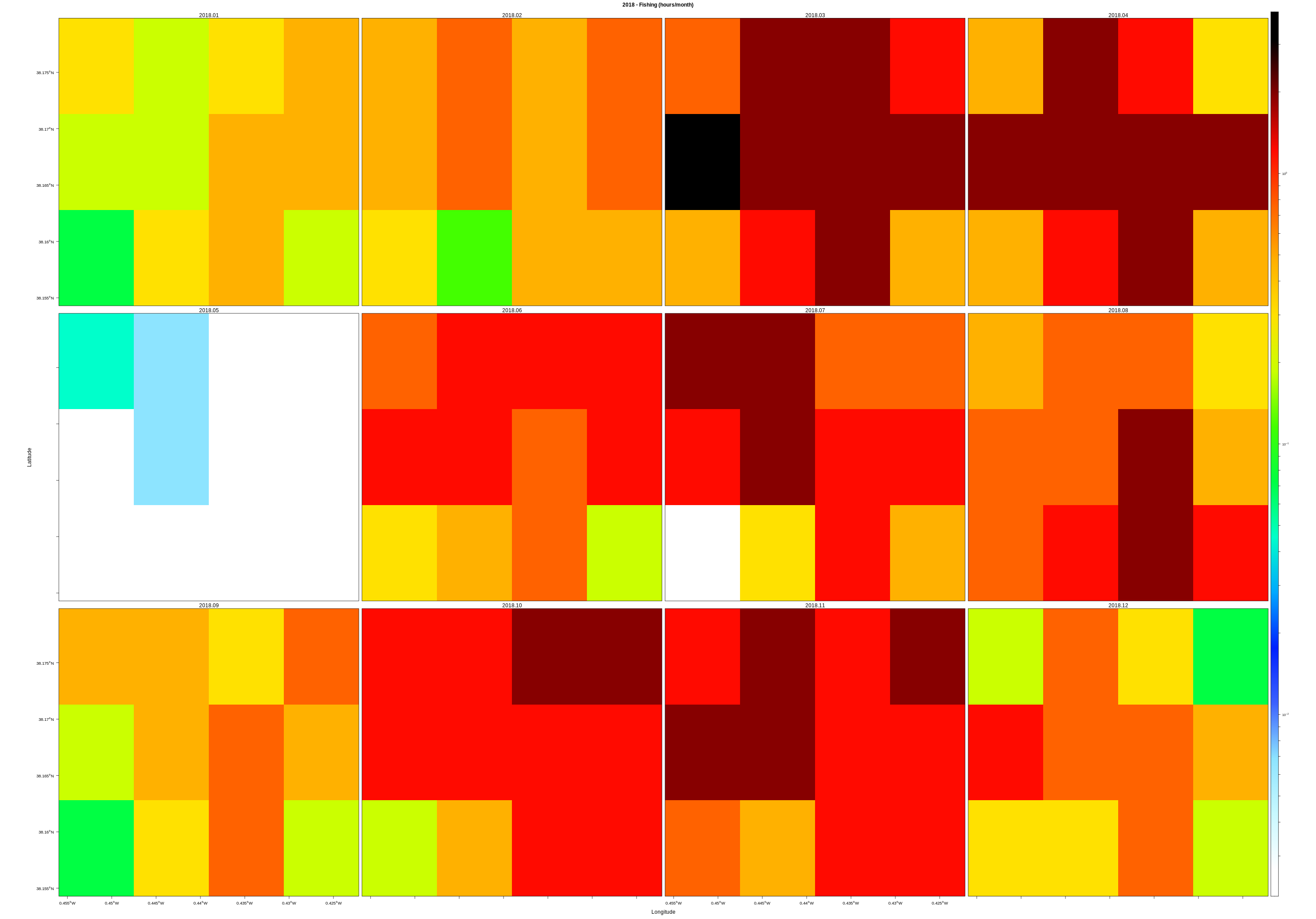 EMODnet Vessel Density maps were created by Cogea in 2019 in the framework of EMODnet Human Activities, an initiative funded by the EU Commission. The maps are based on AIS data purchased by Collecte Localisation Satellites (CLS) and ORBCOMM. The maps show shipping density in 1km*1km cells of a grid covering all EU waters (and some neighbouring areas). Density is expressed as hours per square kilometre per month. The following ship types are available:0 Other, 1 Fishing, 2 Service, 3 Dredging or underwater ops, 4 Sailing, 5 Pleasure Craft, 6 High speed craft, 7 Tug and towing, 8 Passenger, 9 Cargo, 10 Tanker, 11 Military and Law Enforcement, 12 Unknown and All ship types. Data are available by month of year. Yearly averages are also available.