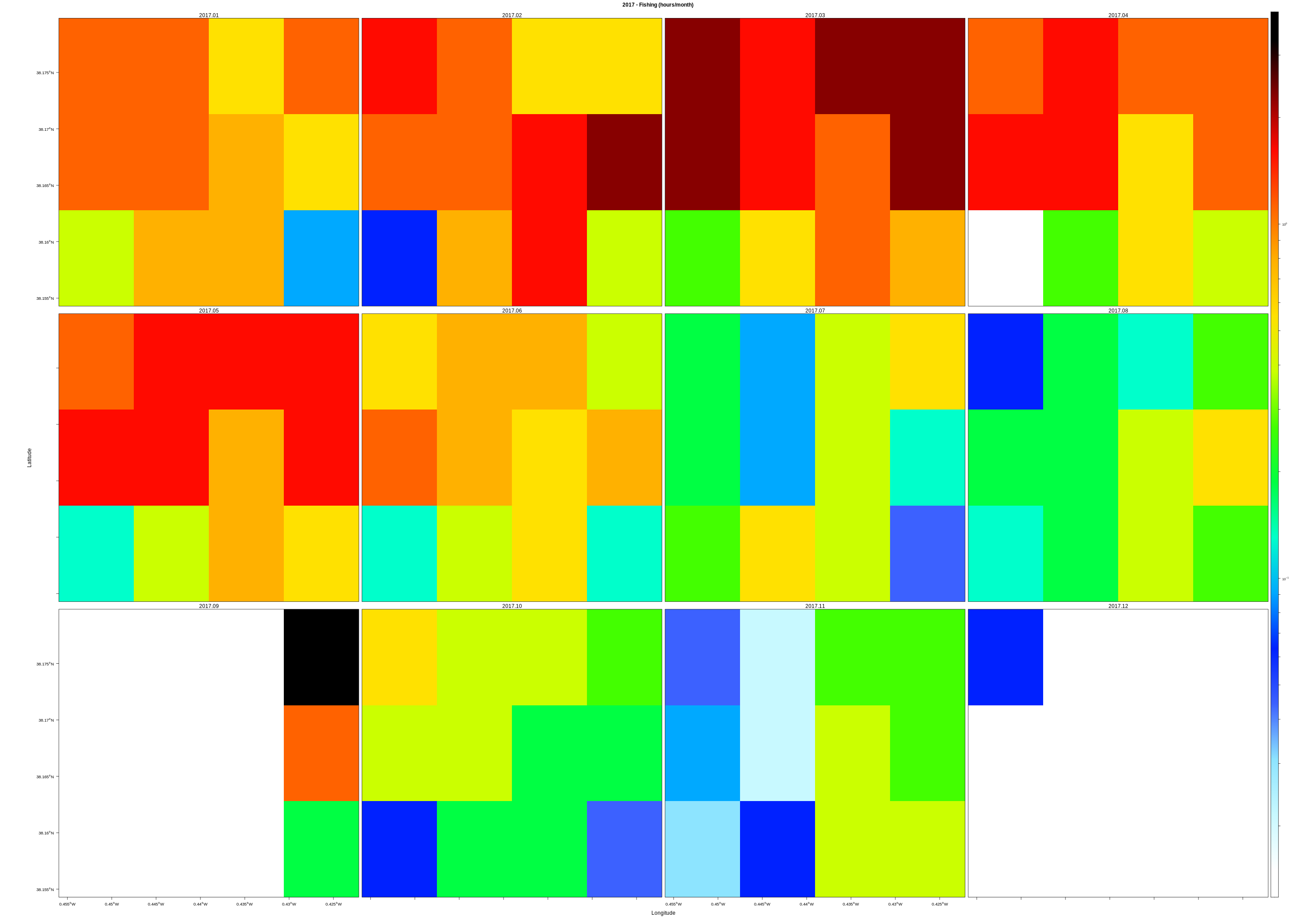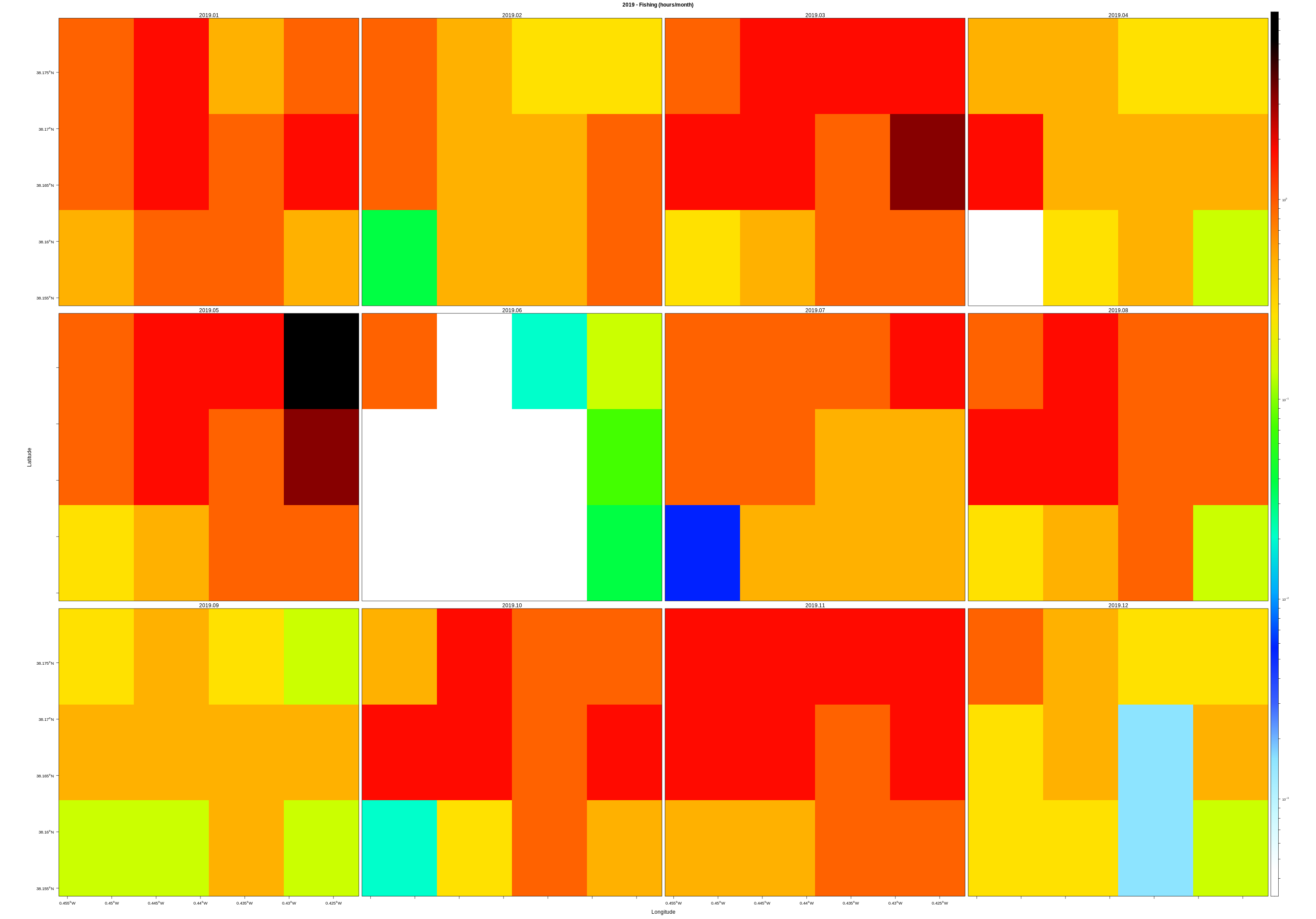 EMODnet Vessel Density maps were created by Cogea in 2019 in the framework of EMODnet Human Activities, an initiative funded by the EU Commission. The maps are based on AIS data purchased by Collecte Localisation Satellites (CLS) and ORBCOMM. The maps show shipping density in 1km*1km cells of a grid covering all EU waters (and some neighbouring areas). Density is expressed as hours per square kilometre per month. The following ship types are available:0 Other, 1 Fishing, 2 Service, 3 Dredging or underwater ops, 4 Sailing, 5 Pleasure Craft, 6 High speed craft, 7 Tug and towing, 8 Passenger, 9 Cargo, 10 Tanker, 11 Military and Law Enforcement, 12 Unknown and All ship types. Data are available by month of year. Yearly averages are also available.