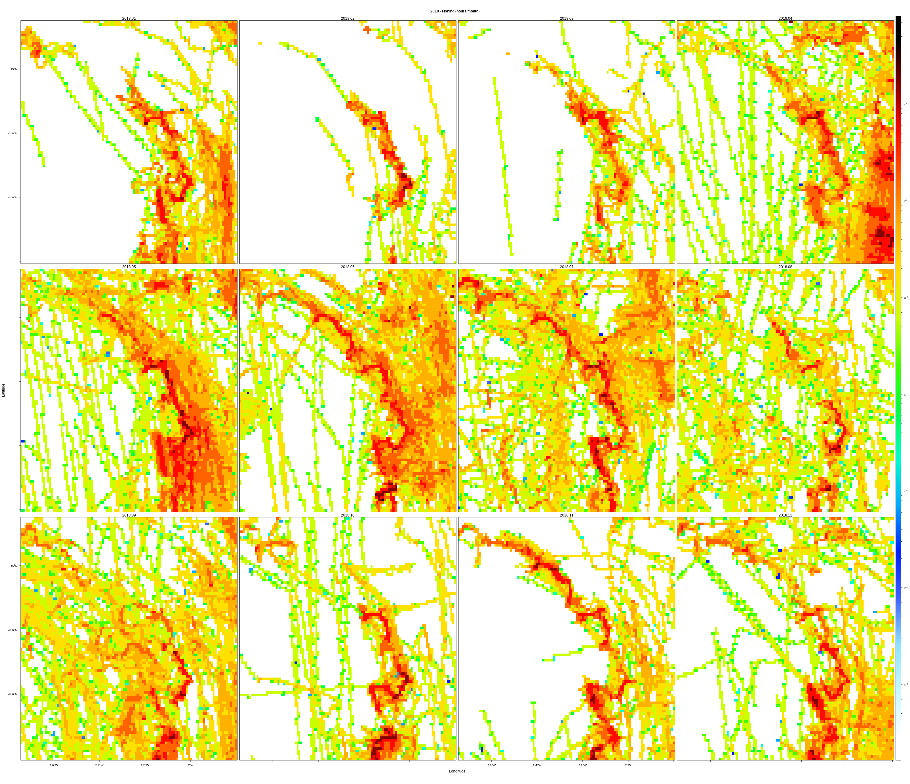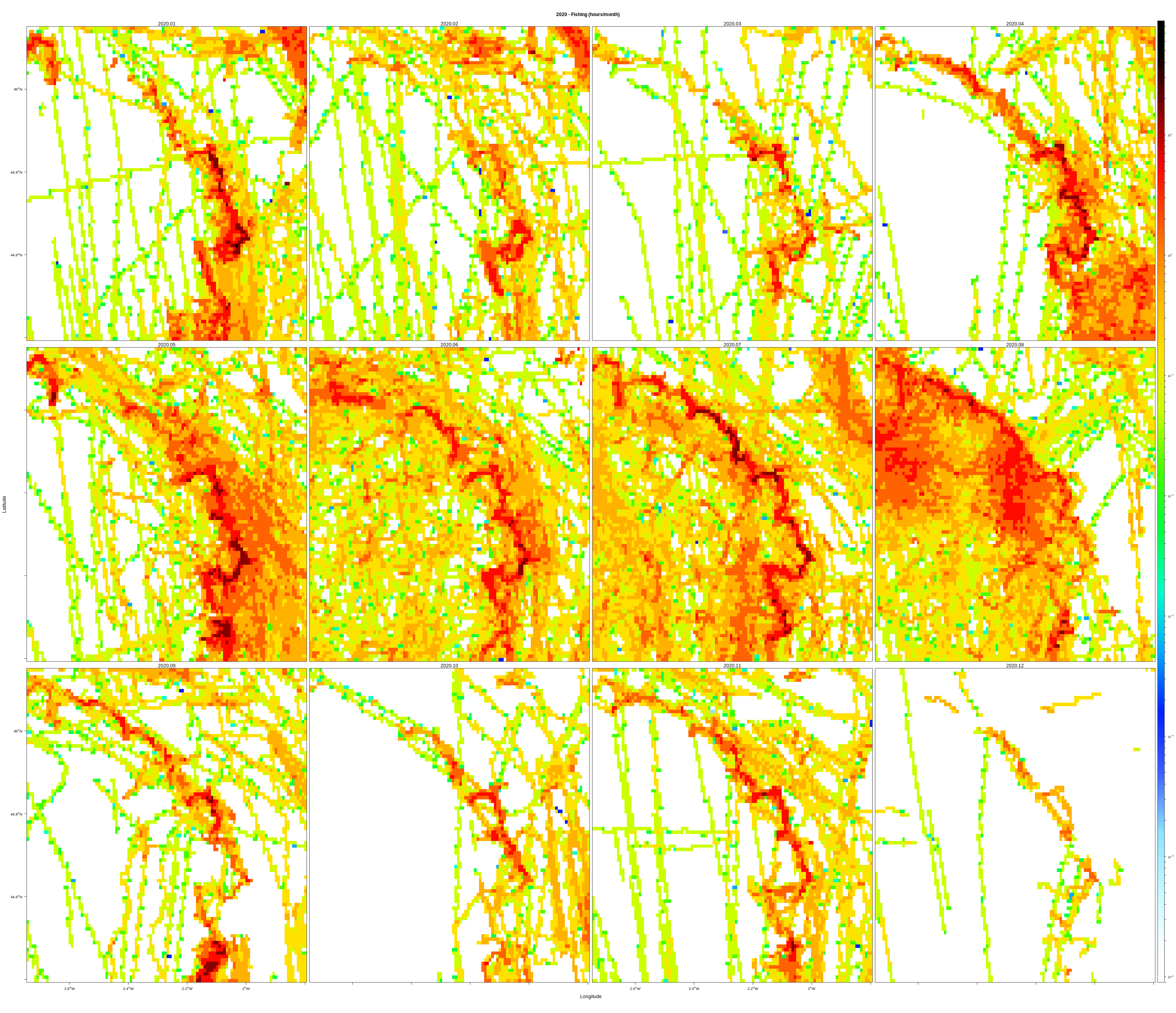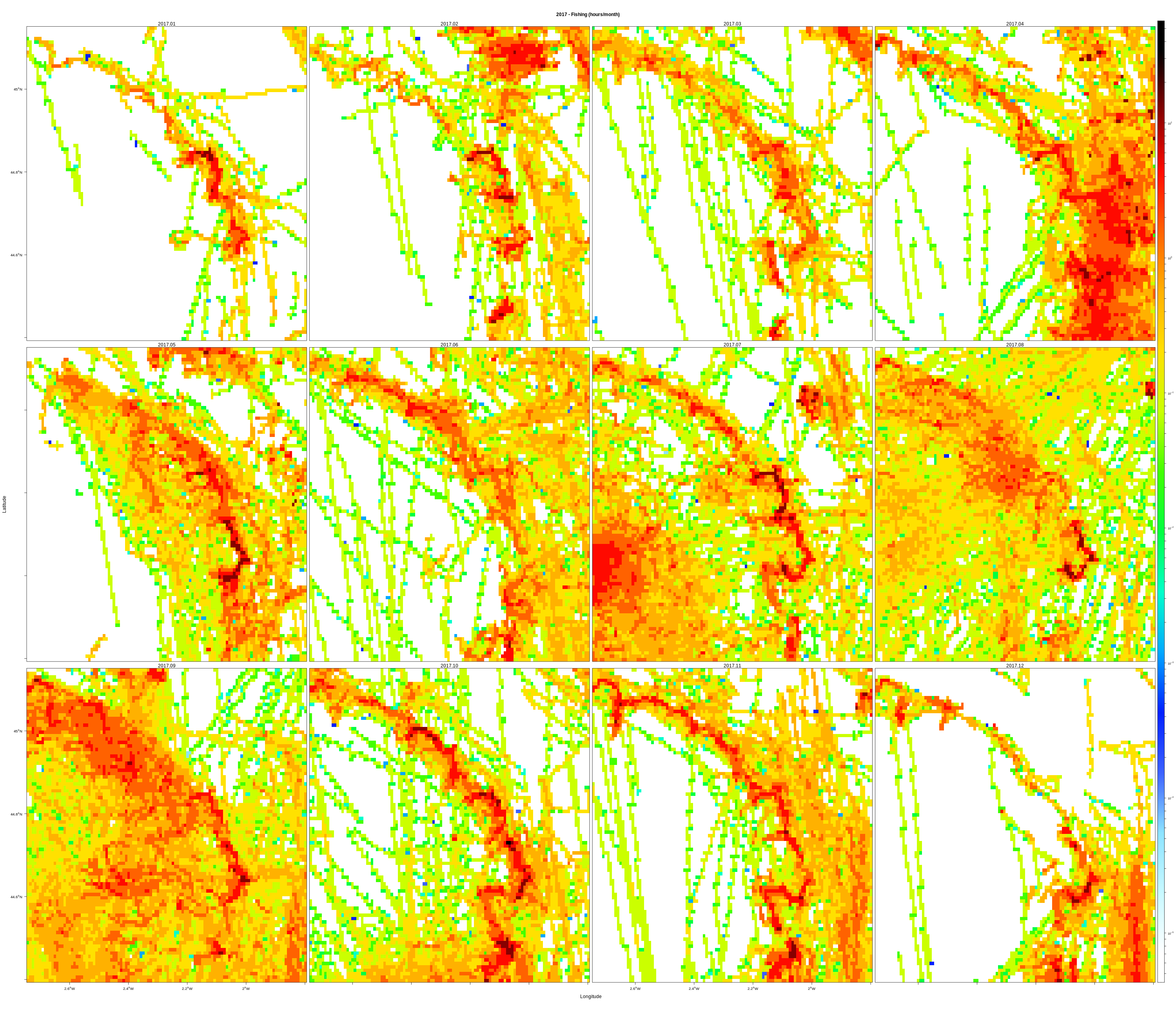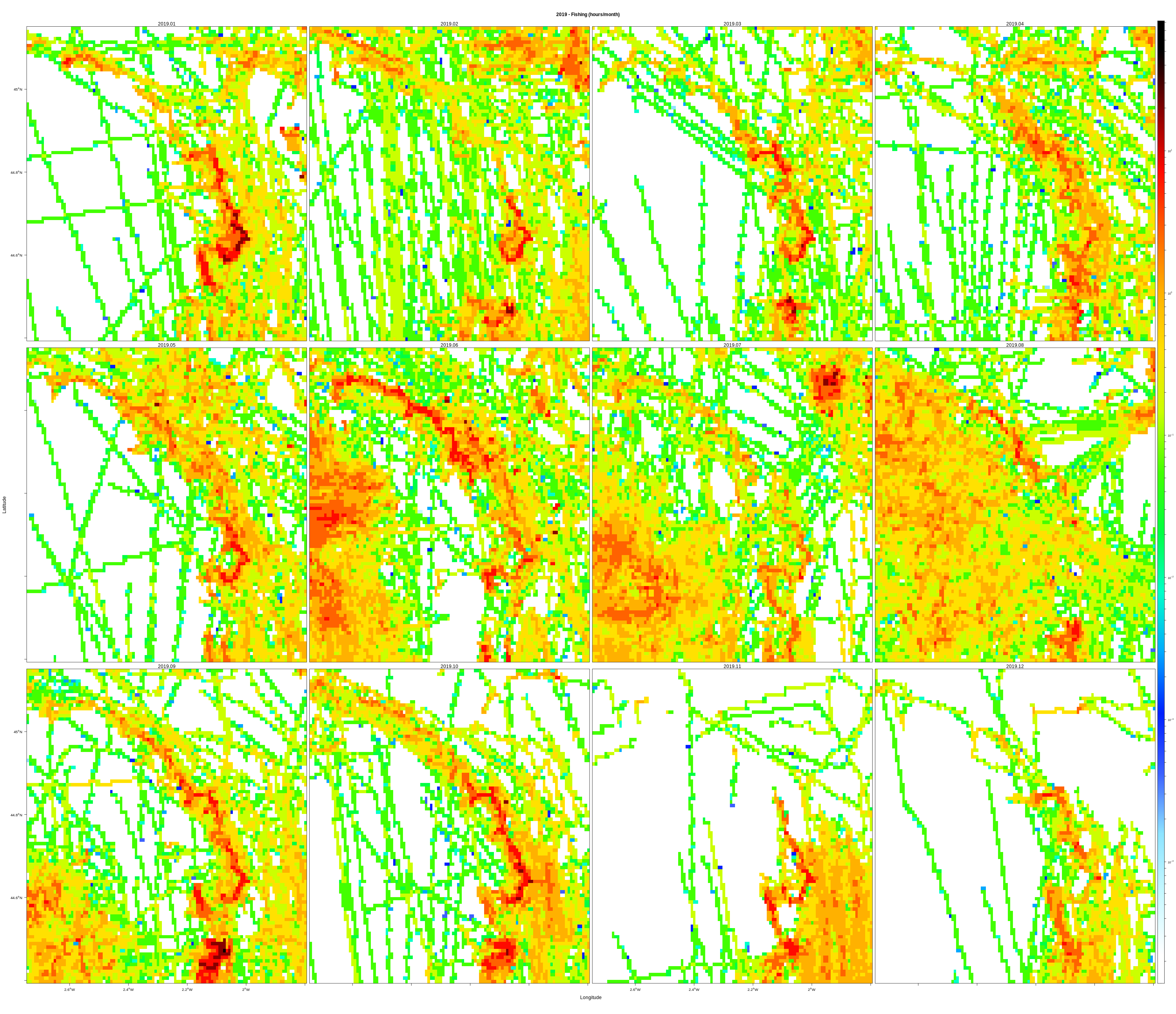 EMODnet Vessel Density maps were created by Cogea in 2019 in the framework of EMODnet Human Activities, an initiative funded by the EU Commission. The maps are based on AIS data purchased by Collecte Localisation Satellites (CLS) and ORBCOMM. The maps show shipping density in 1km*1km cells of a grid covering all EU waters (and some neighbouring areas). Density is expressed as hours per square kilometre per month. The following ship types are available:0 Other, 1 Fishing, 2 Service, 3 Dredging or underwater ops, 4 Sailing, 5 Pleasure Craft, 6 High speed craft, 7 Tug and towing, 8 Passenger, 9 Cargo, 10 Tanker, 11 Military and Law Enforcement, 12 Unknown and All ship types. Data are available by month of year. Yearly averages are also available.