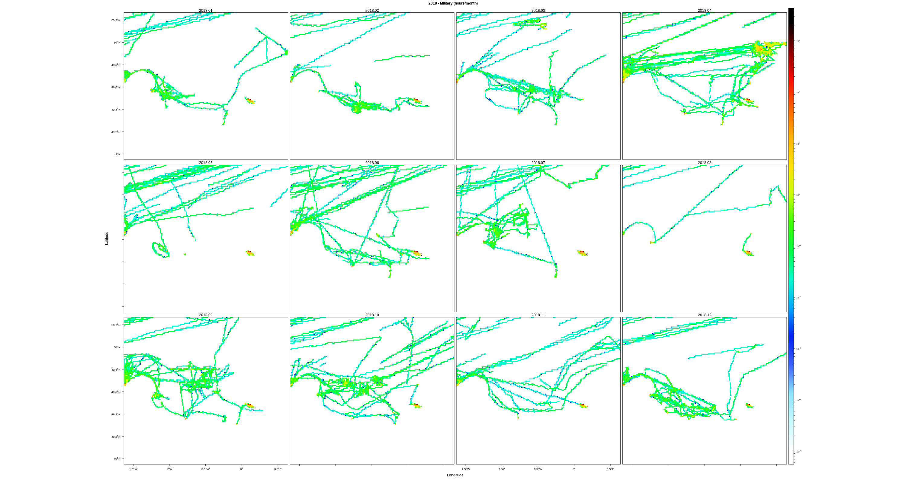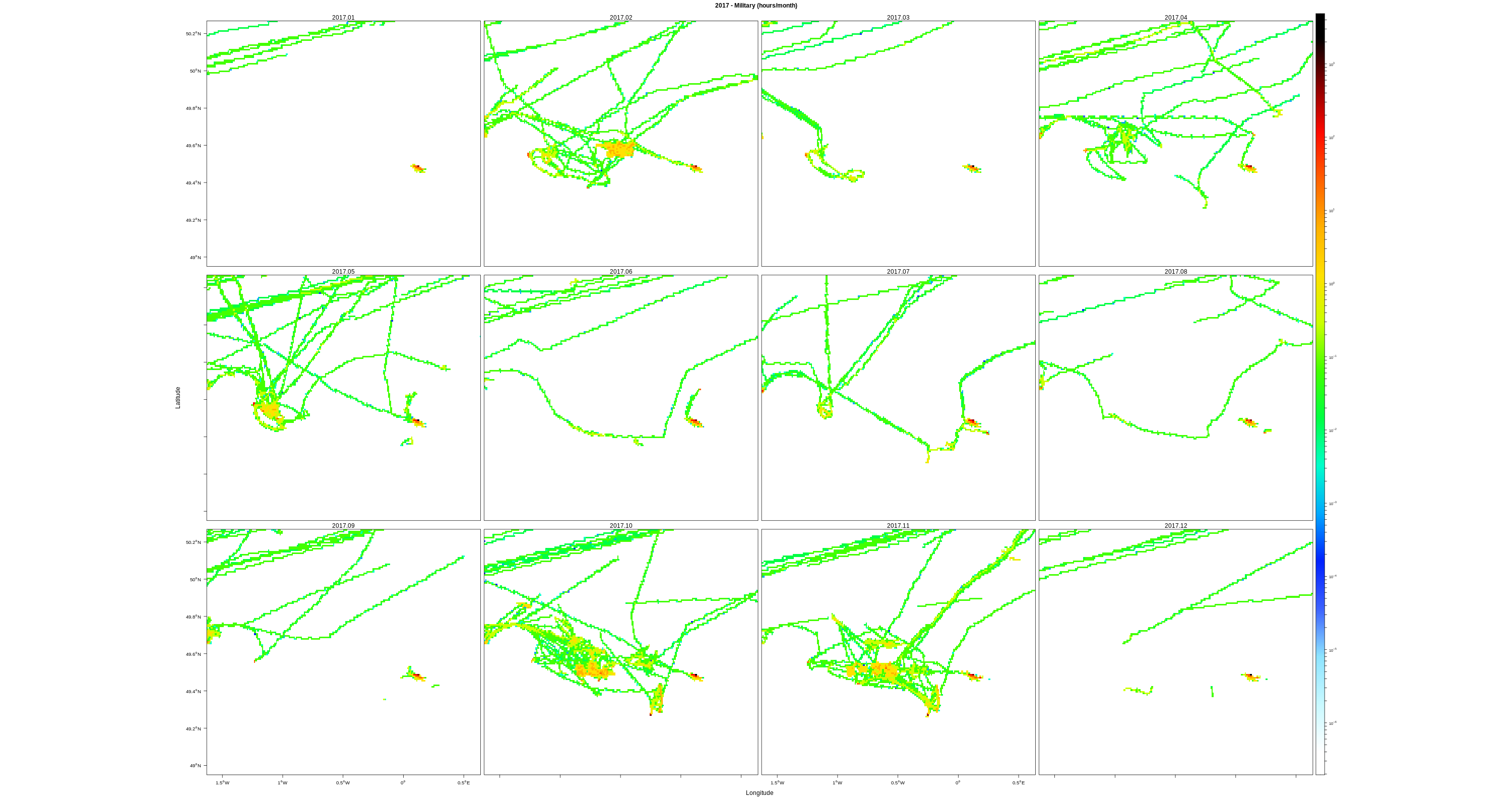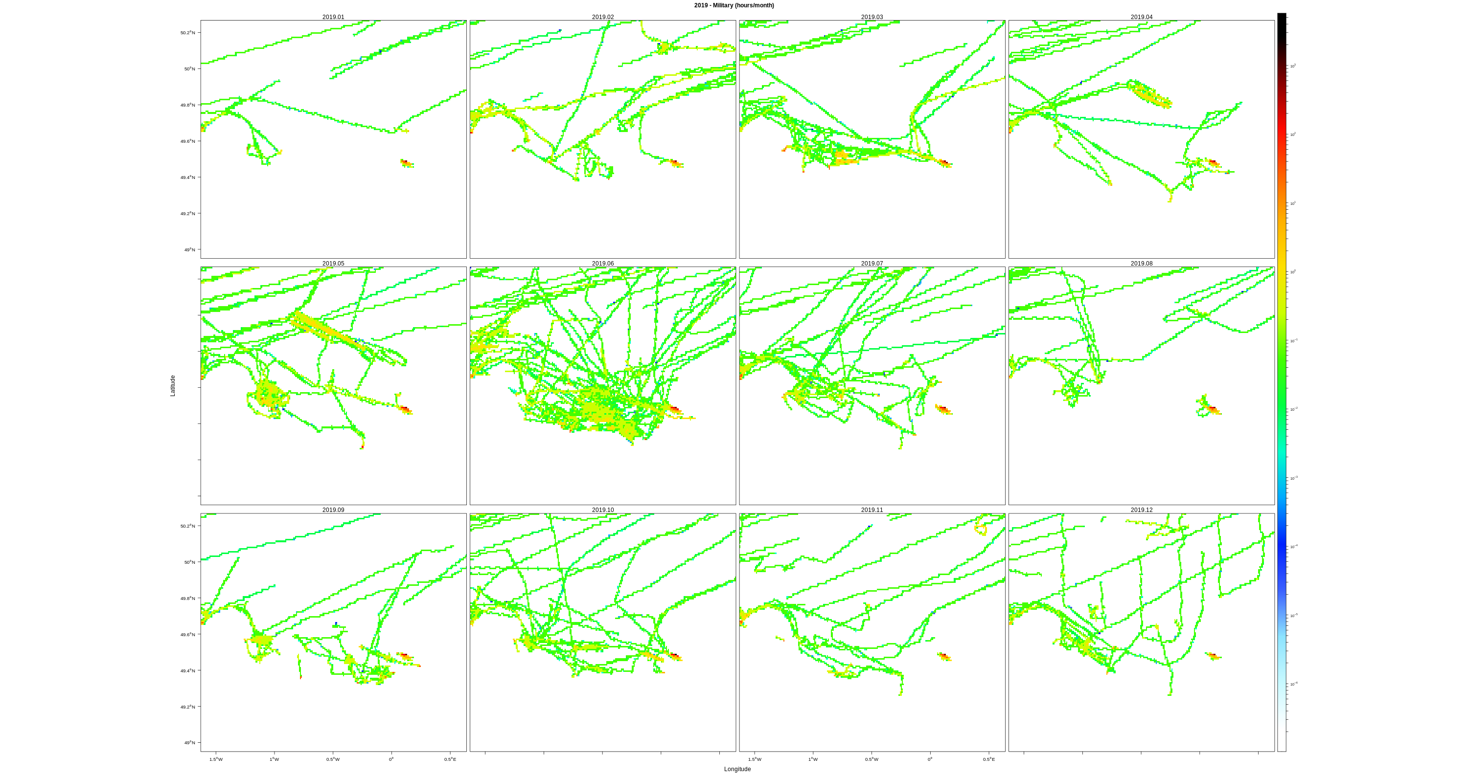 EMODnet Vessel Density maps were created by Cogea in 2019 in the framework of EMODnet Human Activities, an initiative funded by the EU Commission. The maps are based on AIS data purchased by Collecte Localisation Satellites (CLS) and ORBCOMM. The maps show shipping density in 1km*1km cells of a grid covering all EU waters (and some neighbouring areas). Density is expressed as hours per square kilometre per month. The following ship types are available:0 Other, 1 Fishing, 2 Service, 3 Dredging or underwater ops, 4 Sailing, 5 Pleasure Craft, 6 High speed craft, 7 Tug and towing, 8 Passenger, 9 Cargo, 10 Tanker, 11 Military and Law Enforcement, 12 Unknown and All ship types. Data are available by month of year. Yearly averages are also available.