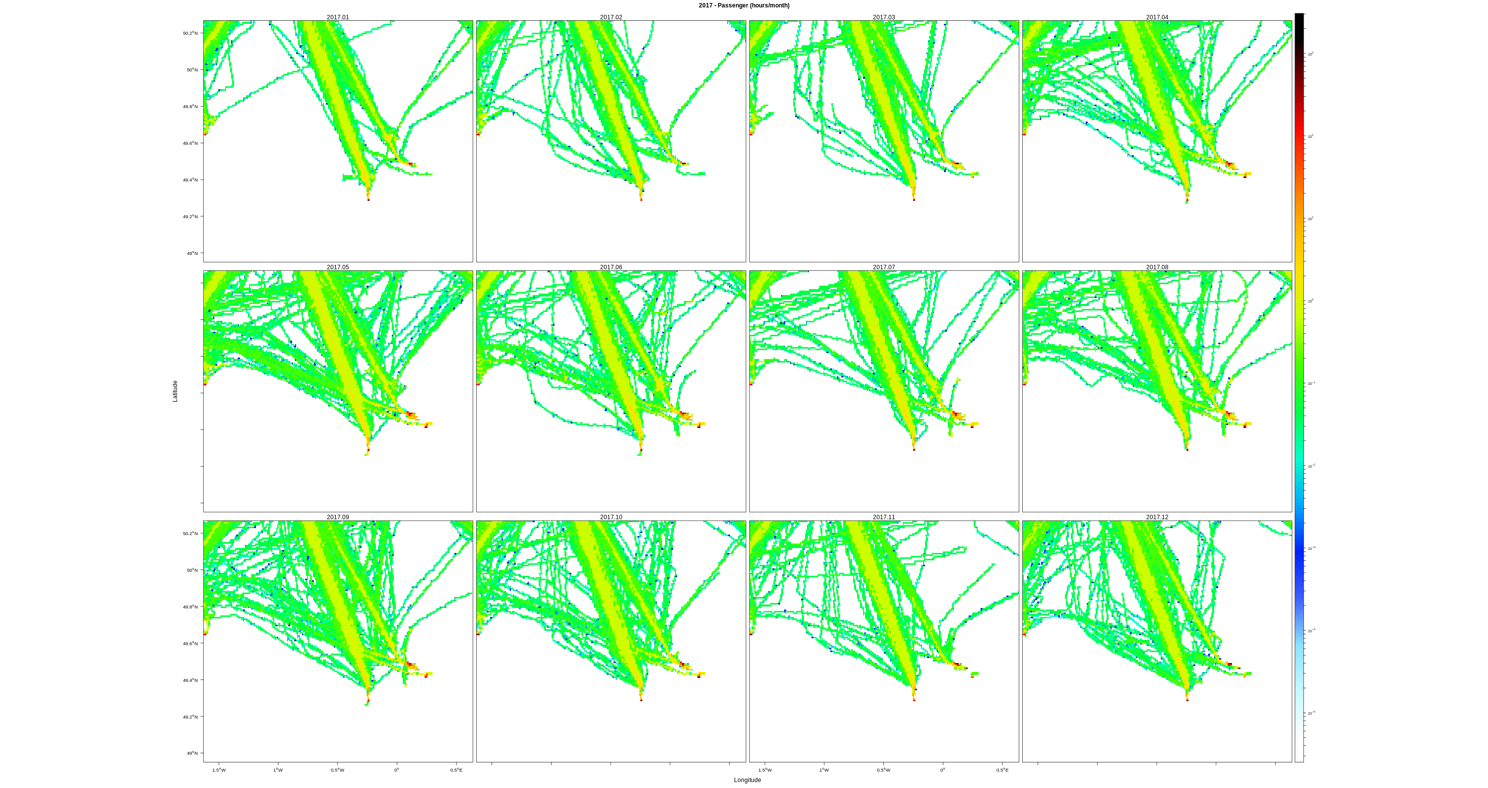 Monthly means (hours/km2)