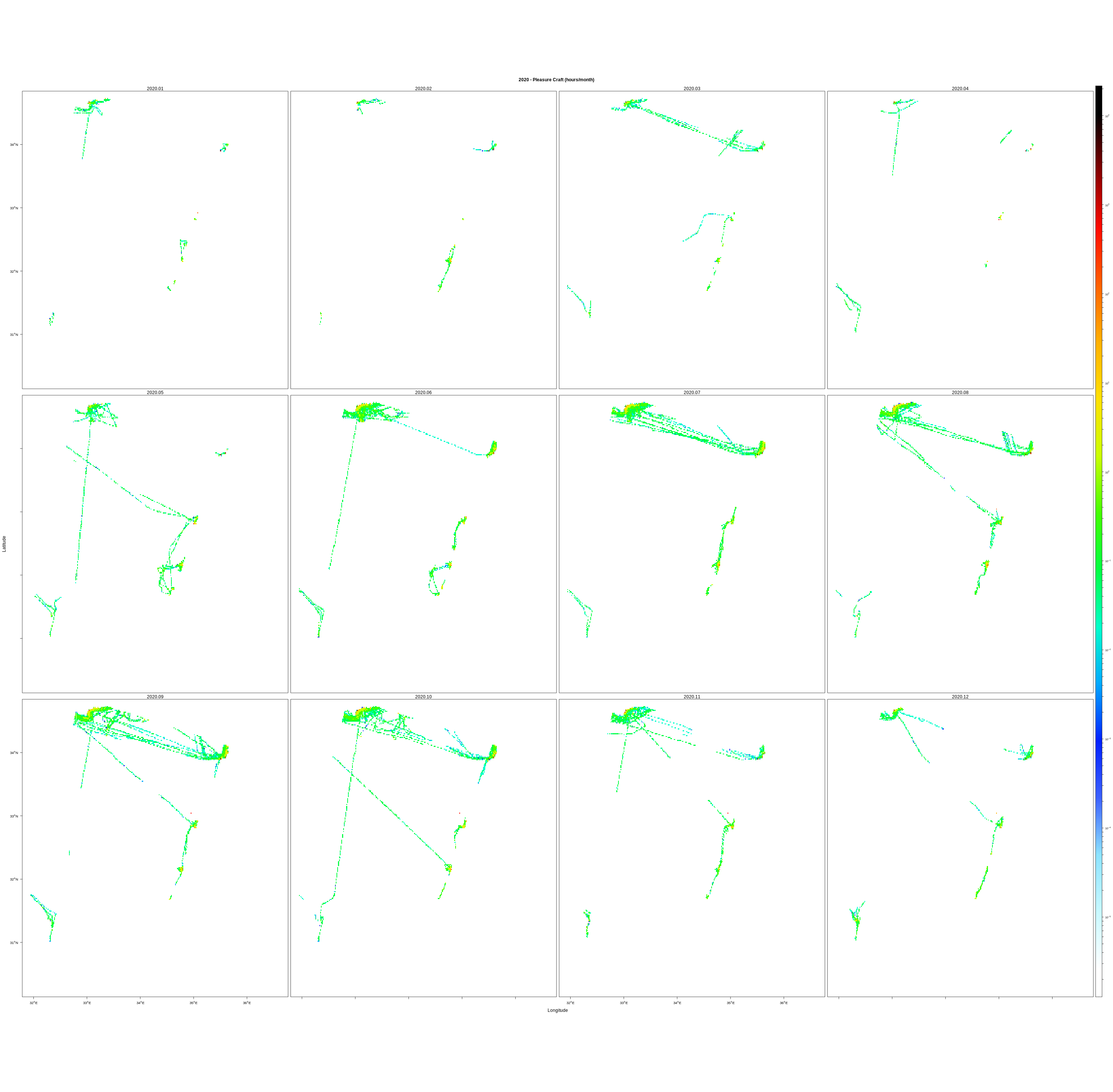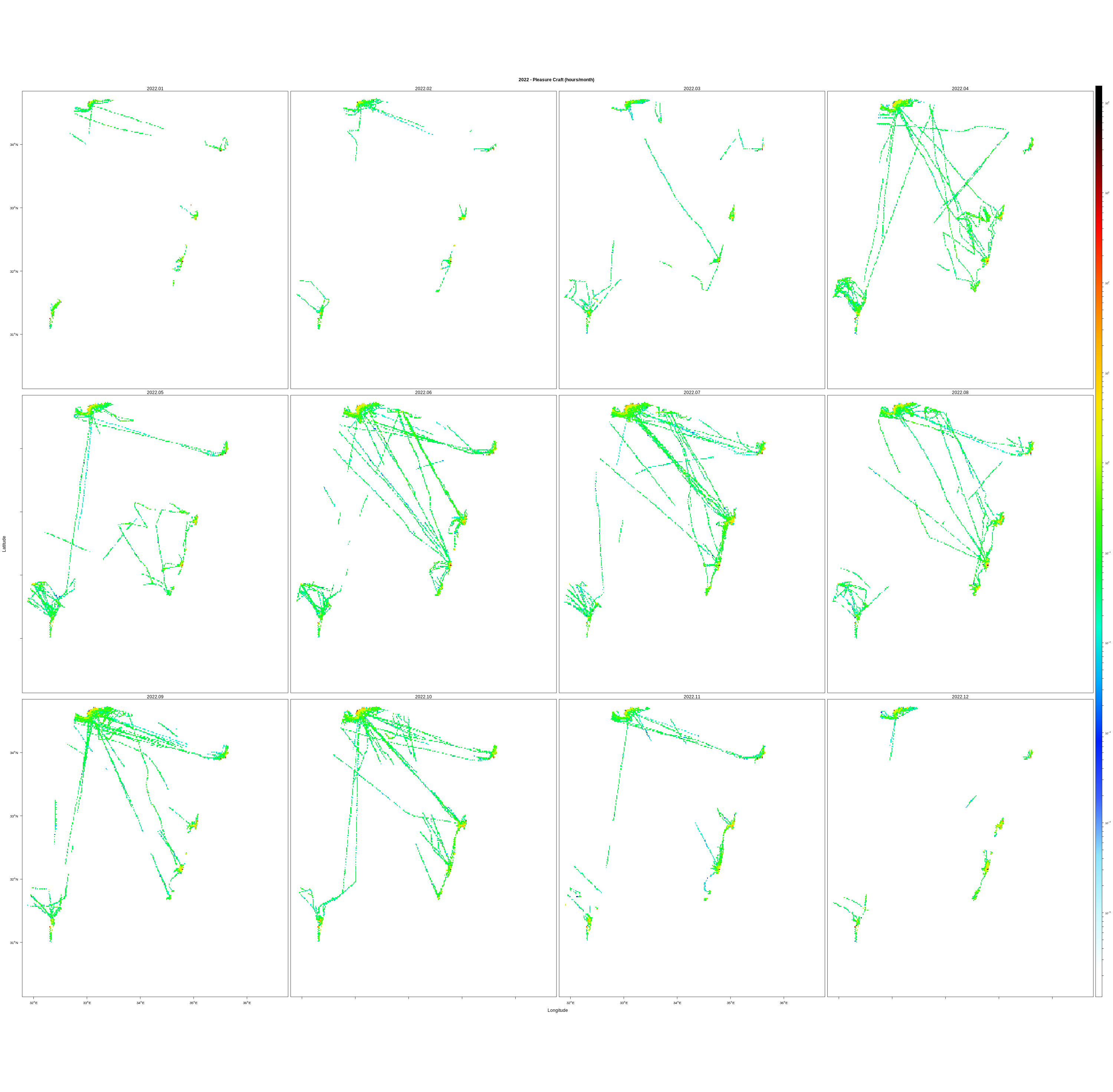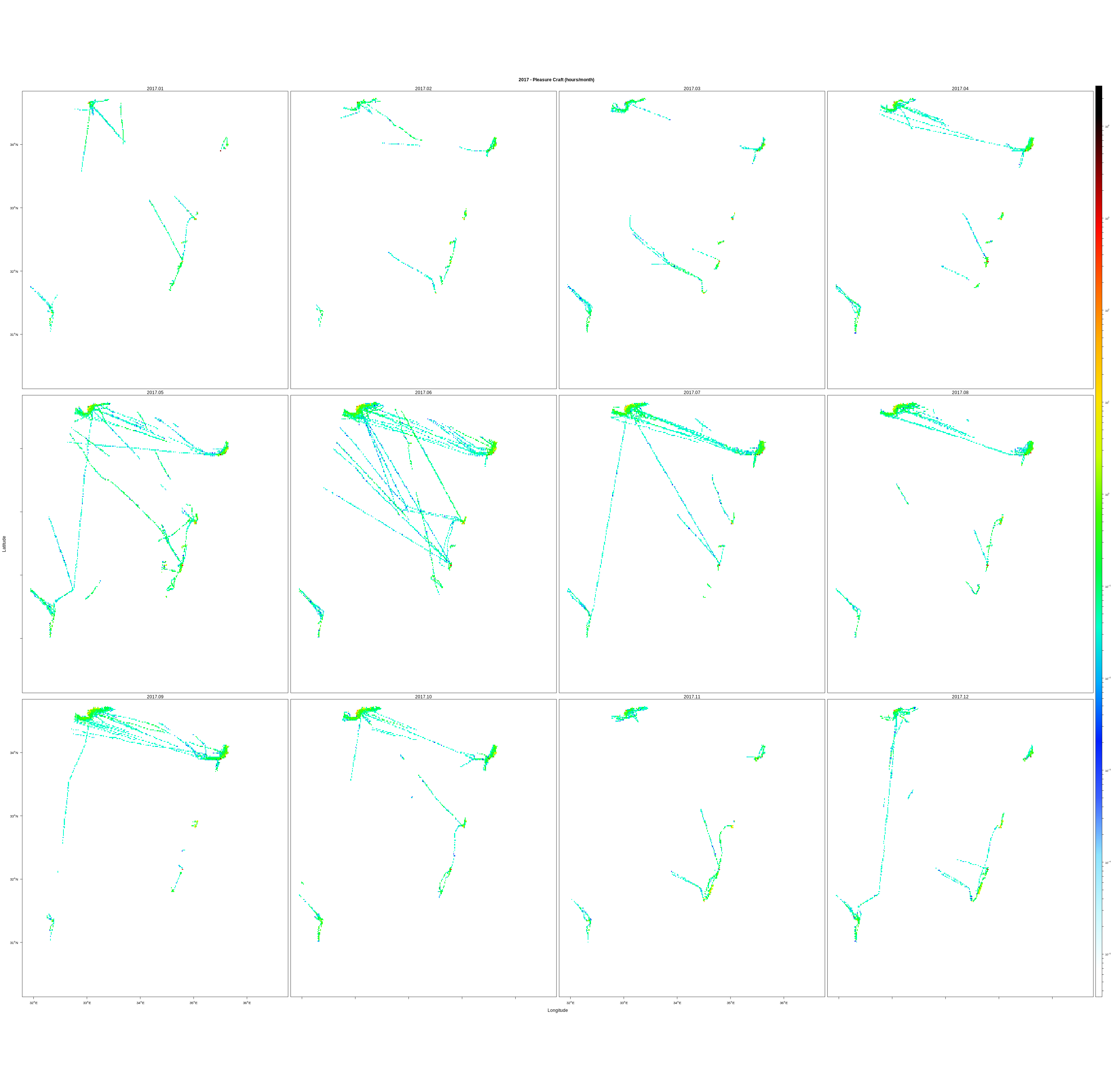 Monthly means (hours/km2)